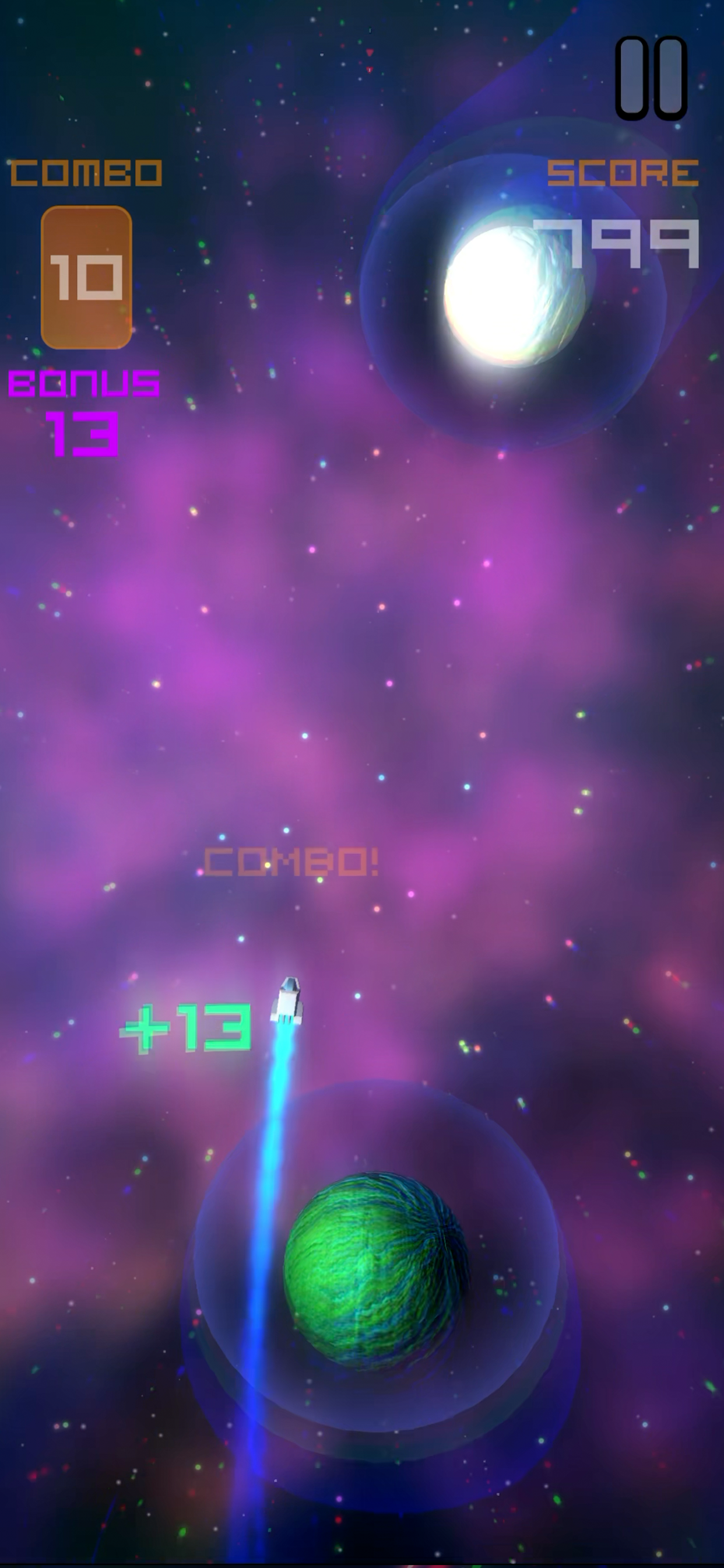 – Risk-and-Reward Gameplay | Fly close to planets to build combos, but beware of collisions